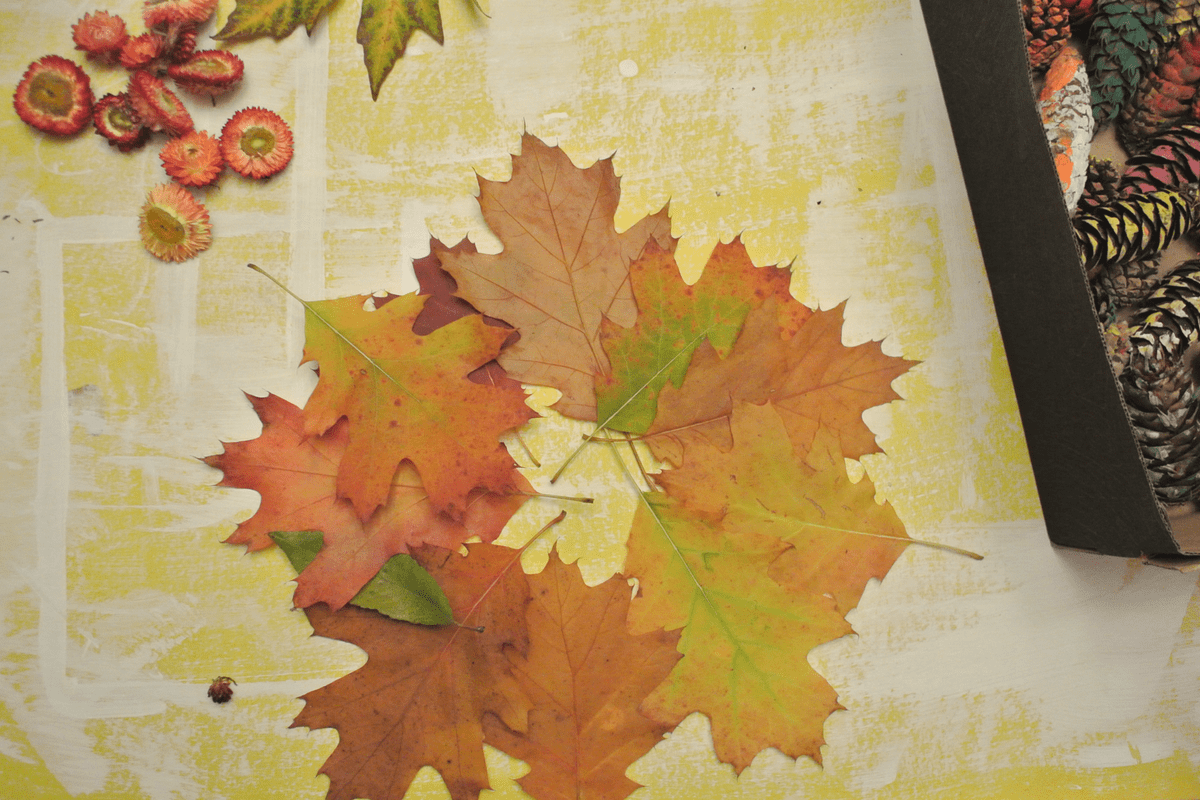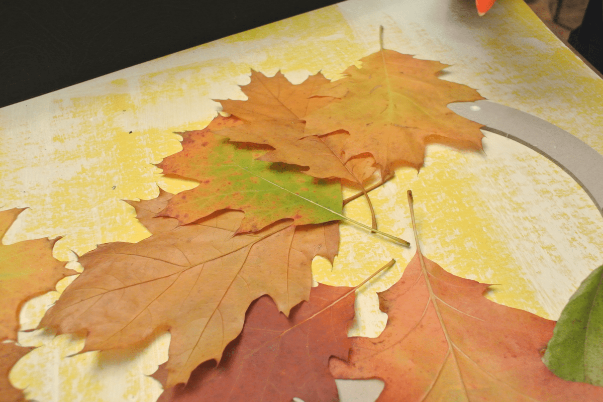 Collect a variety of leaves in different shapes and sizes. Dry and brittle leaves do not work well so make sure you get younger leaves that have just fallen. Leaves with pronounced veins work best!