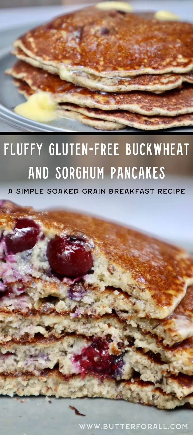 You will be blown away by these fluffy, gluten-free buckwheat and sorghum pancakes.The batter has an addition of acid- and enzyme-rich yogurt, so the longer it sits and soaks, the more digestible it becomes.