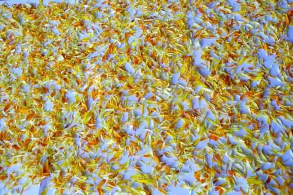To harvest your calendula flowers start by plucking the entire flower head from the stem. Collect them in a basket as you go. Make sure to pick fresh blooms that have not started wilting.