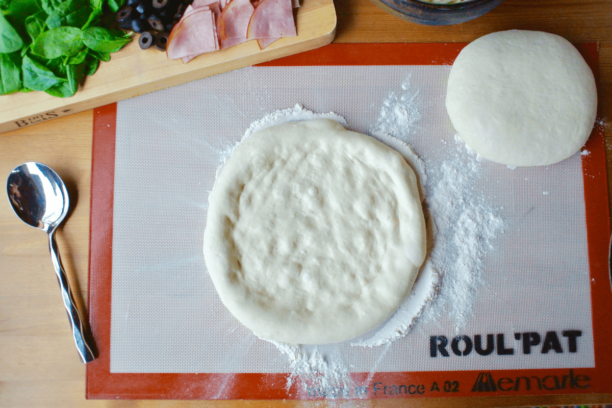 - Remove the dough from the refrigerator and let it rest and rise at room temperature for 1 hour. In the meantime prepare the sauce and toppings.